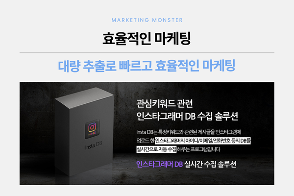 지금 바로 ‘Insta DB’로 인스타 마케팅의 새로운 가능성을 열어보세요.